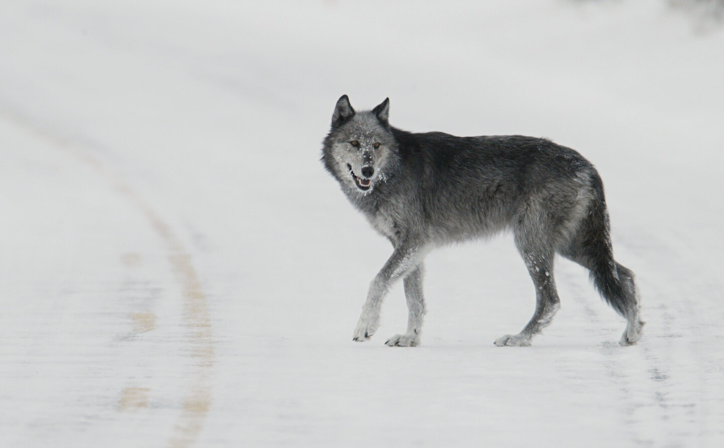 (Image source: “Black and grey wolf (female from Druid pack,’Half Black’) walking in road near Lamar River bridge” by YellowstoneNPS is marked with Public Domain Mark 1.0. )